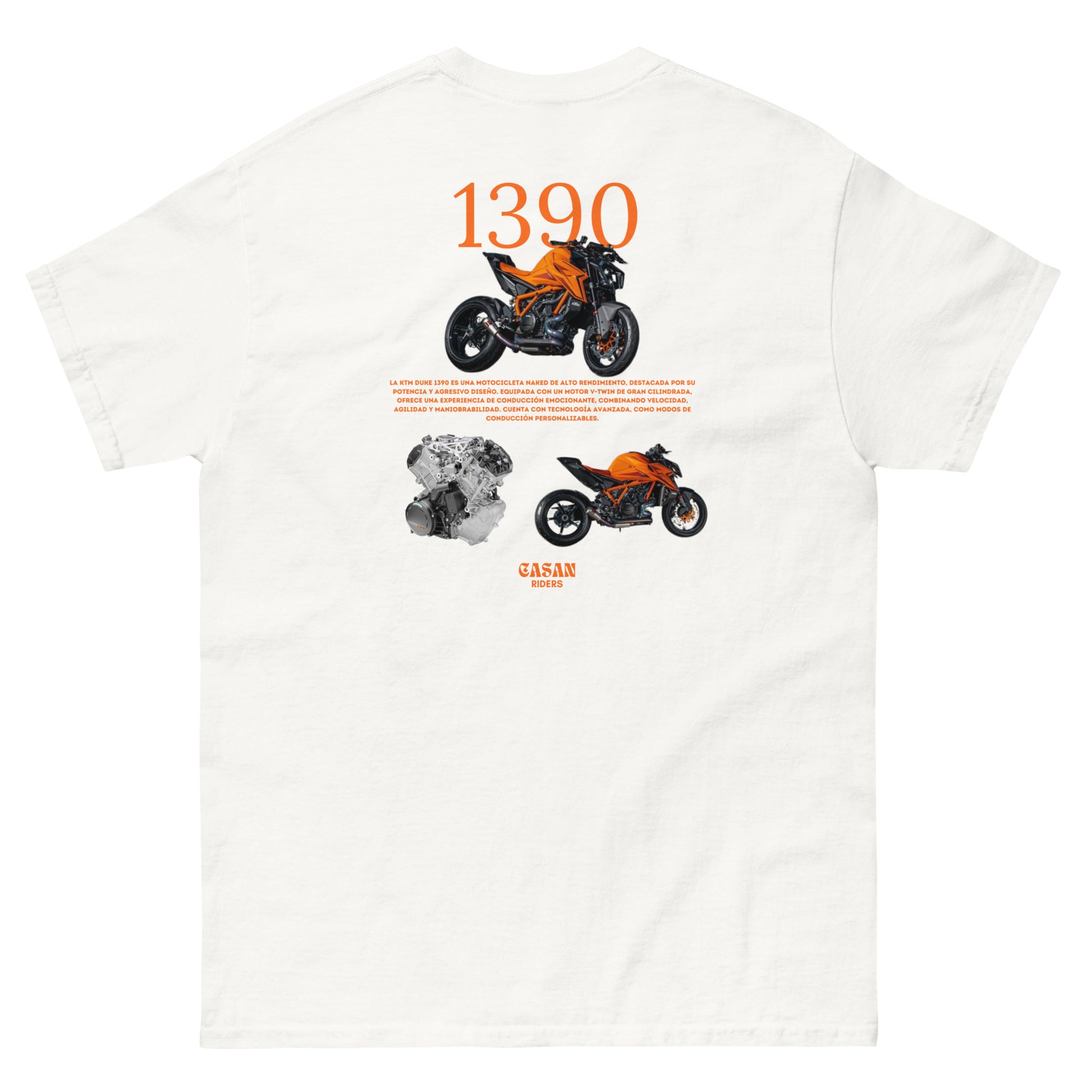 La camiseta Casan KTM Duke 1390 es una prenda diseñada para los fanáticos de las motocicletas y el estilo deportivo. Inspirada en el modelo de moto KTM Duke 1390, suele estar fabricada en materiales cómodos como algodón o poliéster. La camiseta destaca por su estilo dinámico y moderno, con gráficos llamativos que incluyen el logotipo de la marca KTM y posiblemente detalles del modelo 1390. Está diseñada tanto para el uso casual como para mostrar la pasión por las motos, siendo ideal para los seguidores del mundo motero.