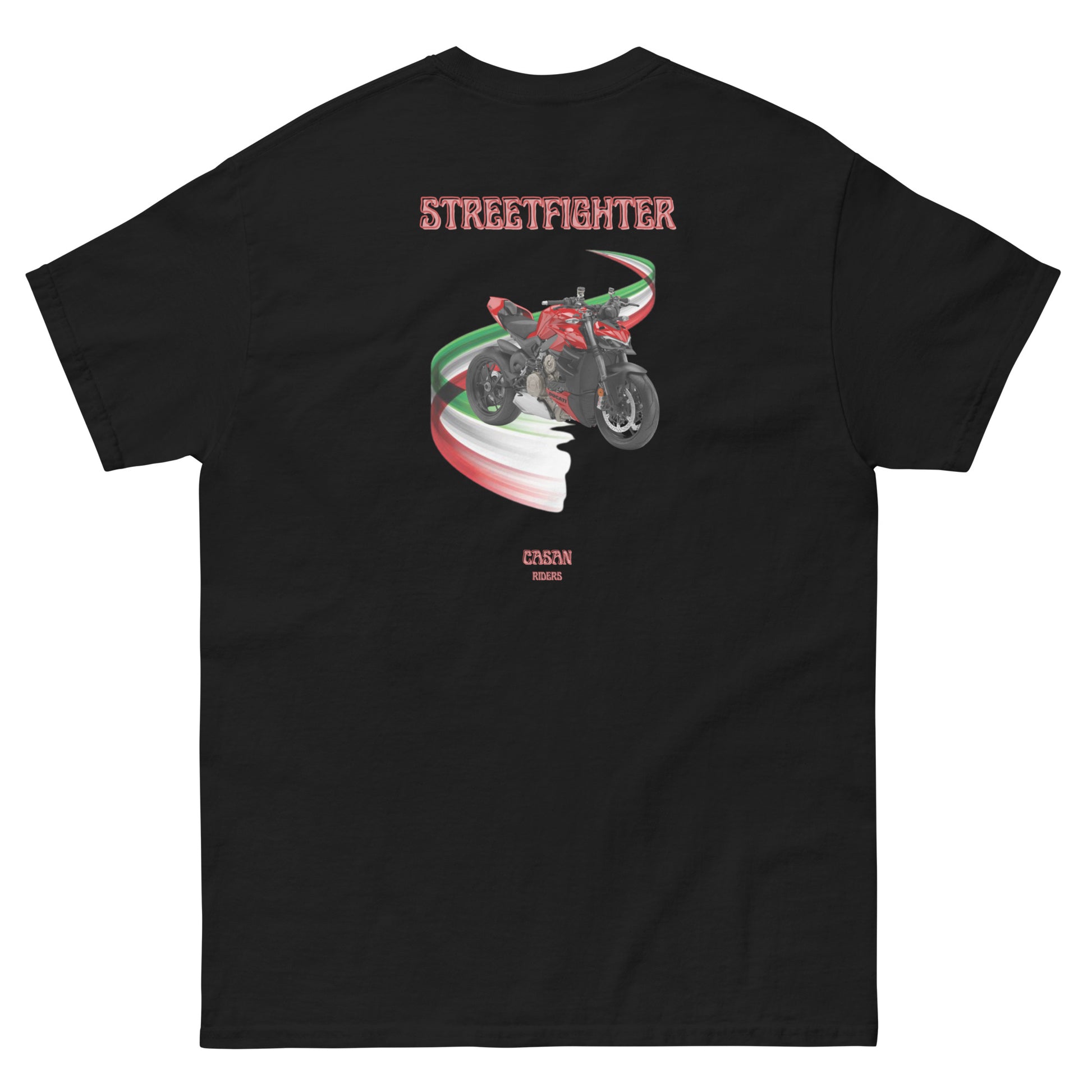 La camiseta "STREETFIGHTER" de la marca Casan es una prenda de estilo urbano que destaca por su diseño audaz y moderno. Fabricada en algodón de alta calidad, ofrece comodidad y durabilidad. En la parte delantera, sobresale el logo distintivo de Casan, impreso en tamaño grande, aportando un toque de identidad fuerte y reconocible a la camiseta. El diseño refleja un espíritu rebelde y dinámico, ideal para quienes buscan un look casual pero impactante.